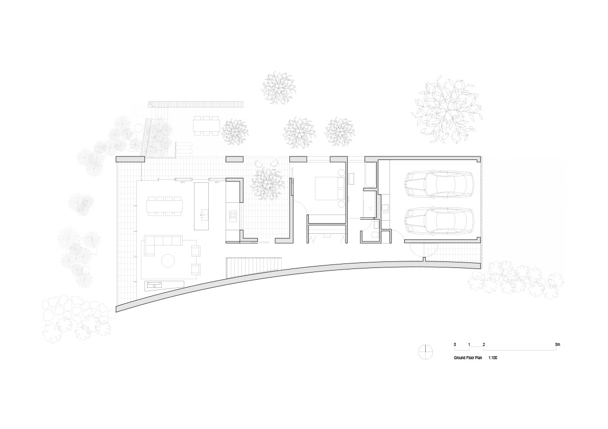 Located on a lazy bend of the Derwent River in Hobart, this house accentuates the drama of living on the water’s edge. Connections with the landscape oscillate between enclosure and embrace. A courtyard, a colonnade, ledges and terraces soften the distinction between house and landscape with a series of steps and paths.