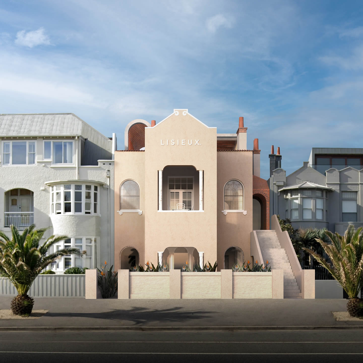 Lisieux is a beachfront property, located in Middle Park on the low lying strip of land between Albert Park Lake and Port Phillip Bay, once called Hobson Bay, and before that for a long time, Nairm. We respectfully acknowledge the Yaluk-ut Weelam Clan of the Boon Wurrung and their continuing relationship to the land upon which this project is sited.